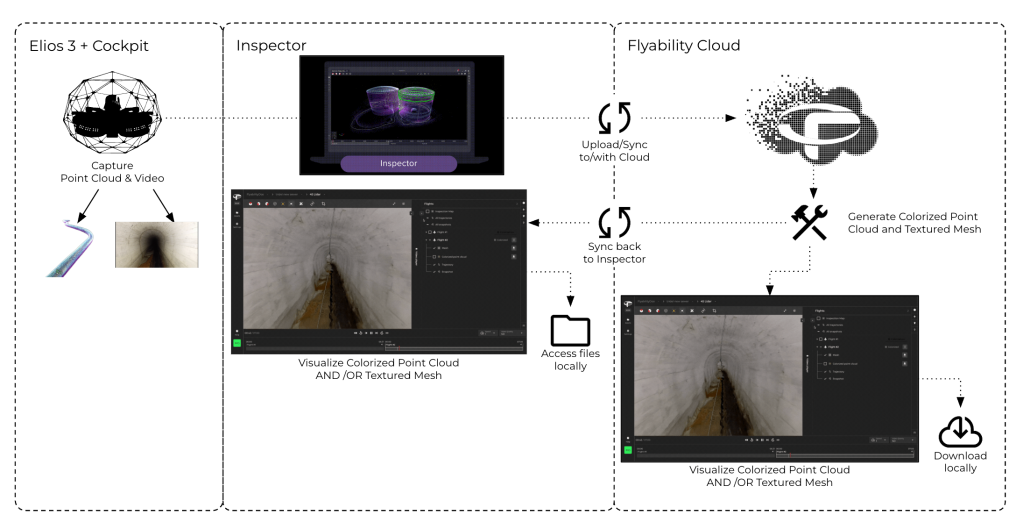 - Process it in Flyability Cloud to generate a textured mesh and colorized point cloud