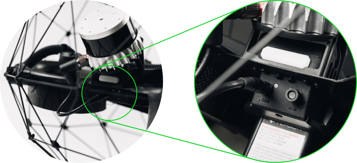 The tether ground power unit is equipped with a backup battery either Elios 3 standard or high-capacity battery that automatically supplies enough power for a safe, controlled landing during unexpected power loss.
