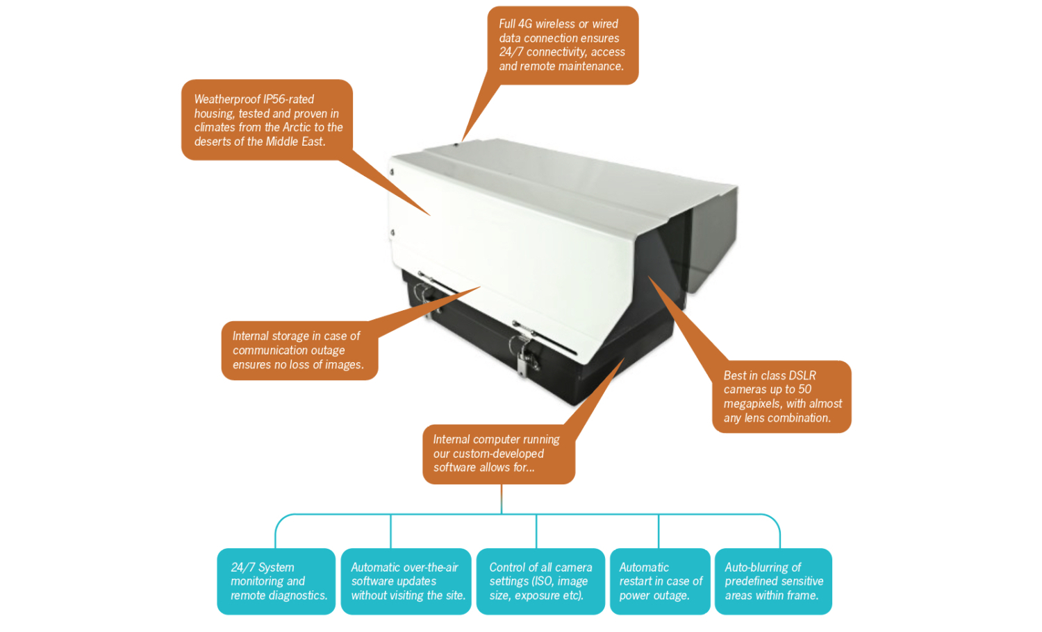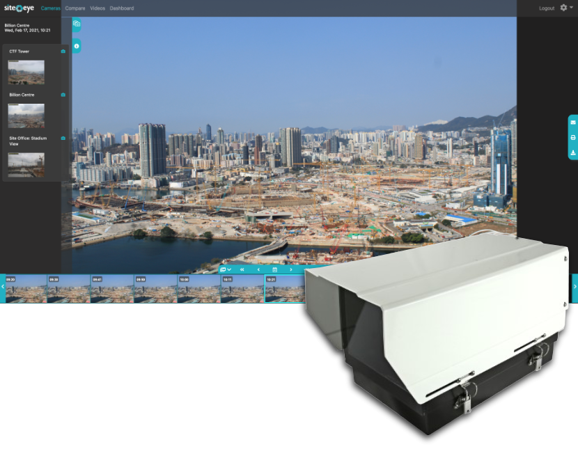 Site-Eye’s robust, weatherproof cameras not only record images in the highest possible detail (up to 50 megapixels), they are also connected to the Internet 24/7. Each and every photo is uploaded, archived, and viewable via the online Site-Eye Project Portal, a secure, time-stamped image archive where you can view full resolution images from your site in close to real time. Compare current and archived images to check progress, and monitor all work on site to date.