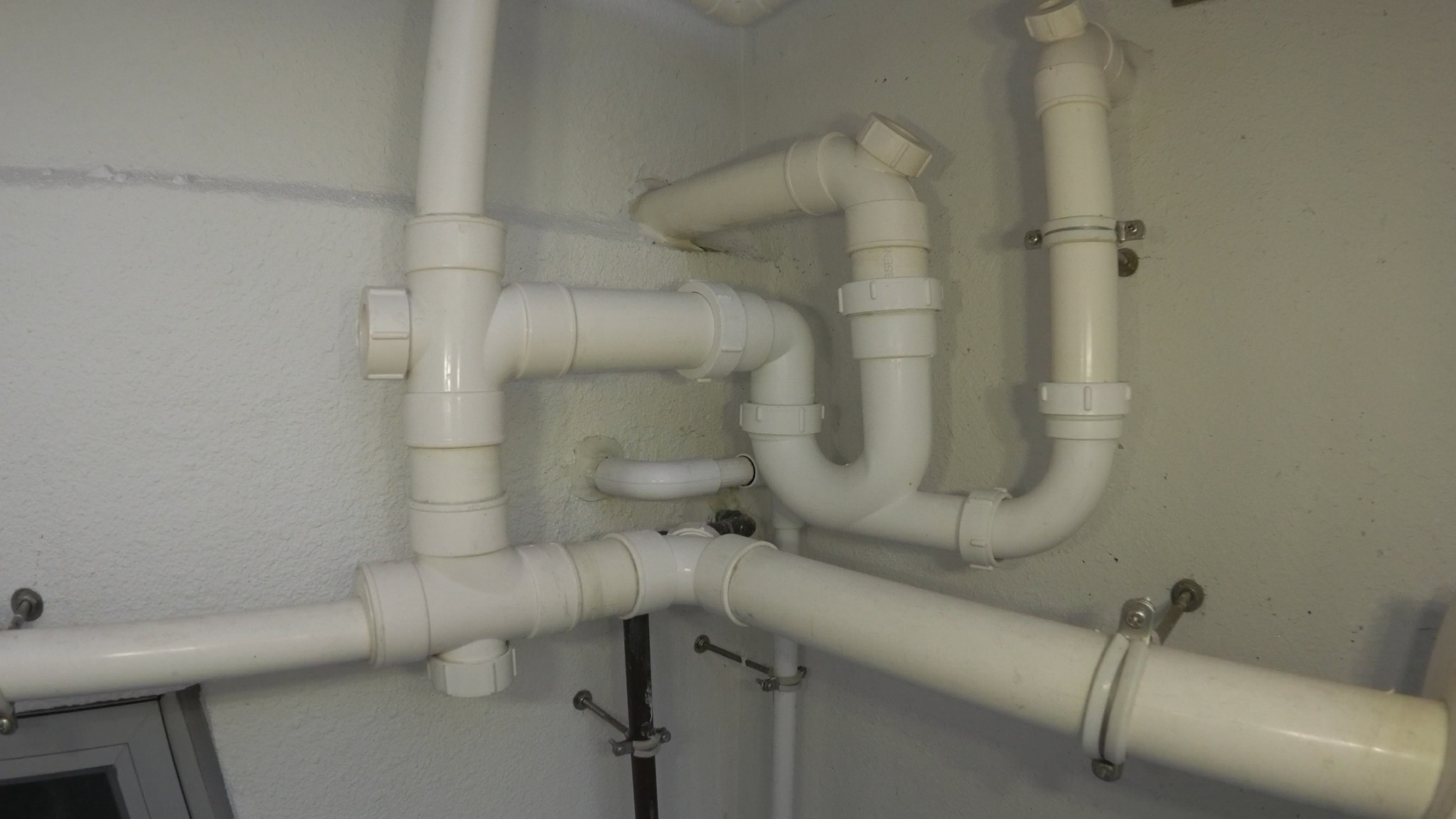 The design of residential blocks in Hong Kong require all bathroom and kitchen areas have windows and ventilation to the outside. Plus, all utilities and piping are placed on the outside of the building.